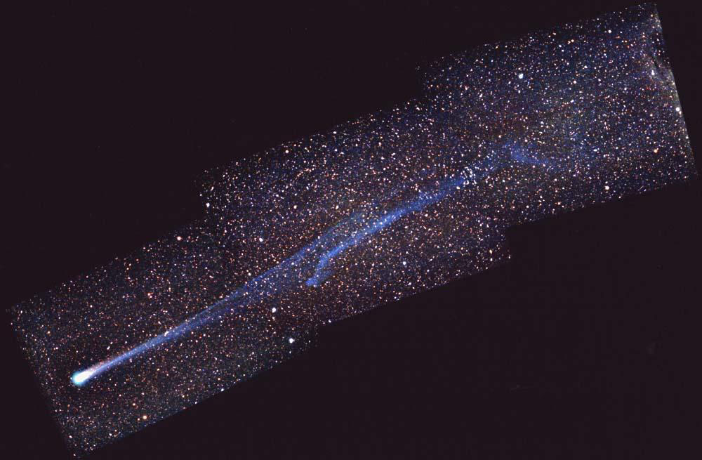 Cette seconde comète de 2 km de diamètre a alors « frôlé » la Terre à environ 15 millions de kilomètres. Elle fut aisément observable pendant les quelques jours autour de son rapprochement maximal avec notre planète, le 25 mars 1996. Ce jour-là, on pouvait, depuis le sol, percevoir son déplacement quasi-à vue d’œil, tant elle était proche et sa vitesse était grande. Sa queue mesurait alors au moins 570 millions de kilomètres, un record en la matière! Ce qui représente, vu de chez nous, sur Terre, environ 4 fois le diamètre de la Pleine Lune dans le ciel que nous voyons! La période de Hyakutake est aujourd’hui de 70 000 ans. Il est fort probable que nous ne la revoyions pas…