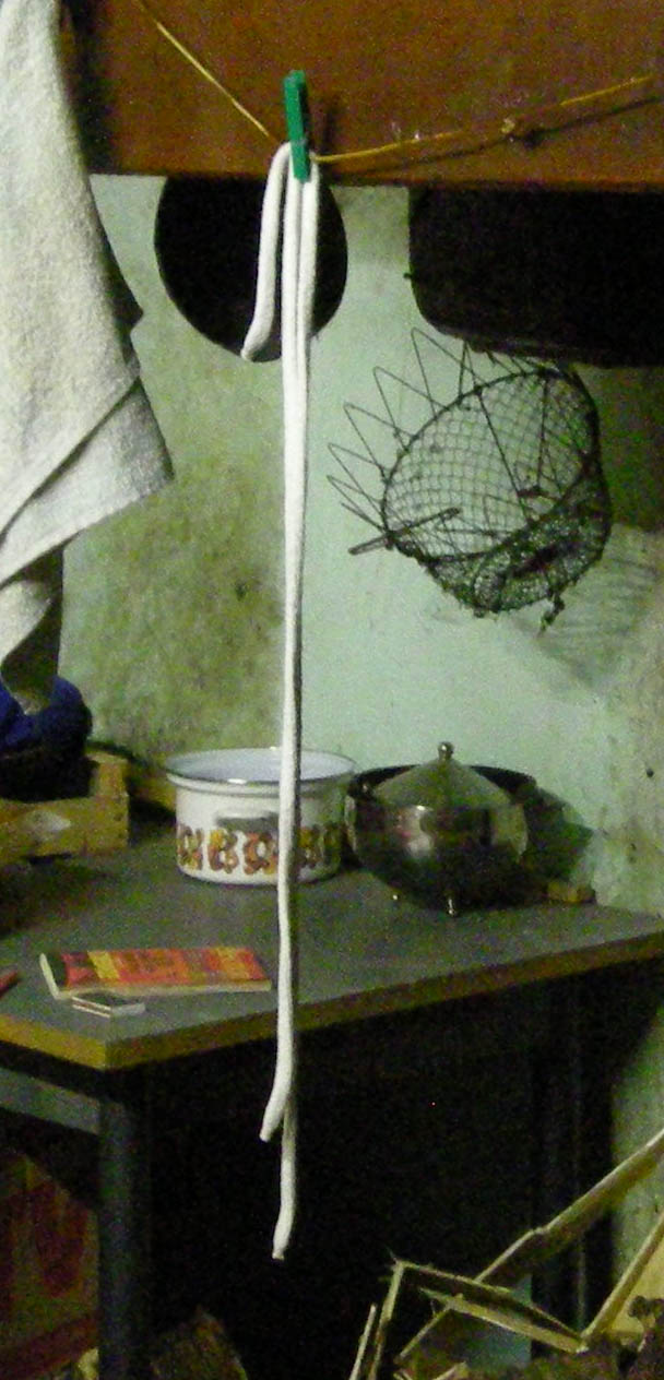 Ci-contre, la corde à 3 bouts découverte dans une très vielle maison.