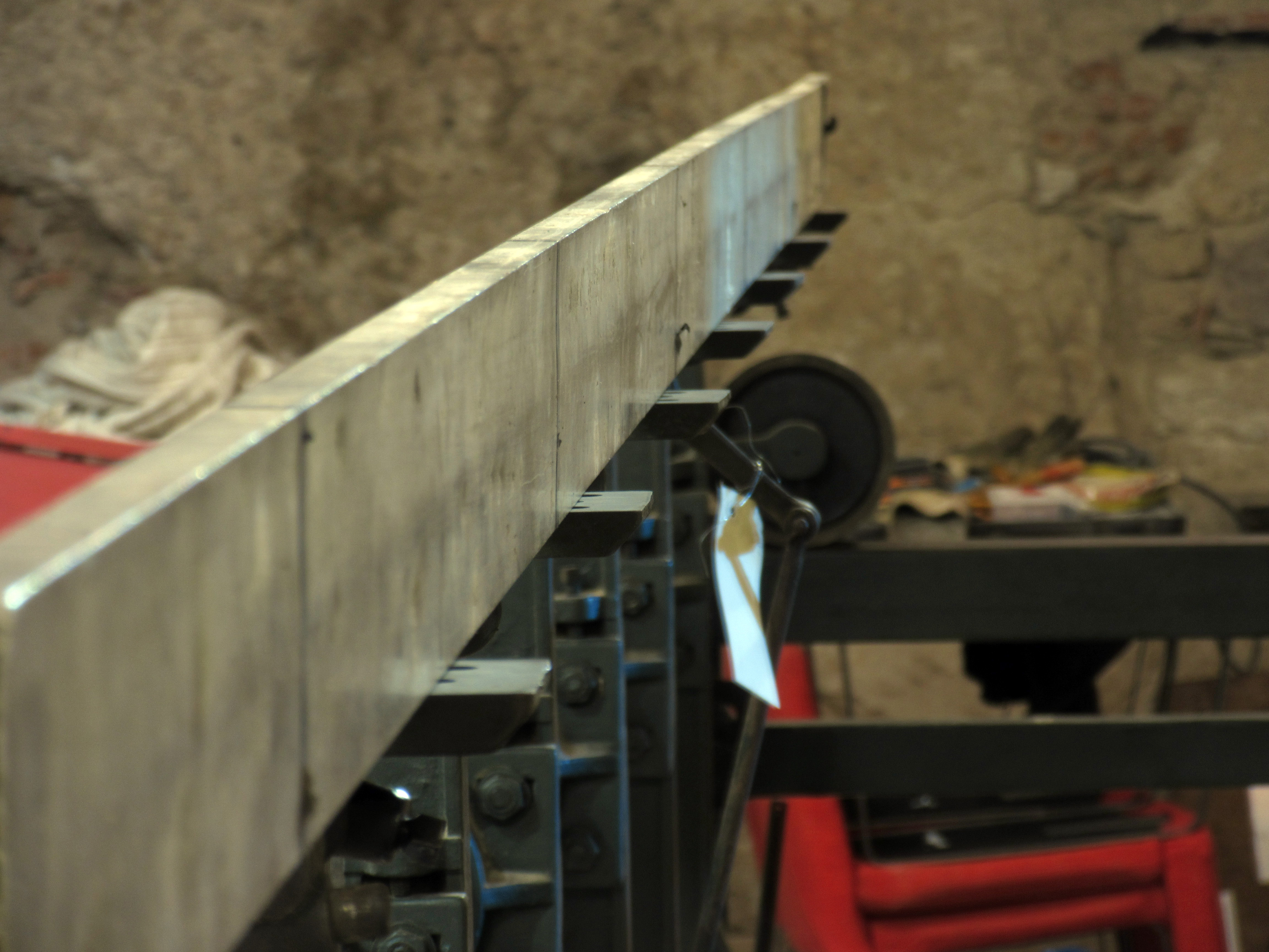 La barre métallique transversale supportera le palier central de l’arbre inverseur ainsi que les guides du cadre.