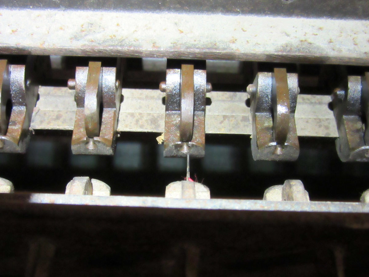 26 pinces sont montées sur chacun des 24 secteurs ou porte-pinces. Il est évident que chacune des 312 pinces du chariot côté fenêtre doivent tomber rigoureusement en face des 312 autres pinces qui vont recevoir les aiguilles sur le chariot côté mur.